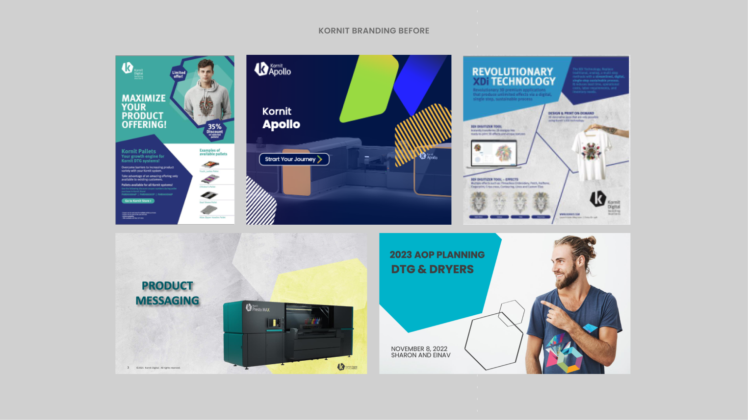 I was an integral part of the design team and worked closely with brand leads and content creators to bring Kornit’s visual language to life. My focus was on designing core collateral materials including:Custom-designed PTTs and presentation decks Branded ebooks and marketing documentsA wide variety of print and digital assets used internally and externally. Additionally, I supported the creation of shared design systems in Figma and assisted with ensuring brand consistency across all touchpoints—from strategy decks to physical packaging.